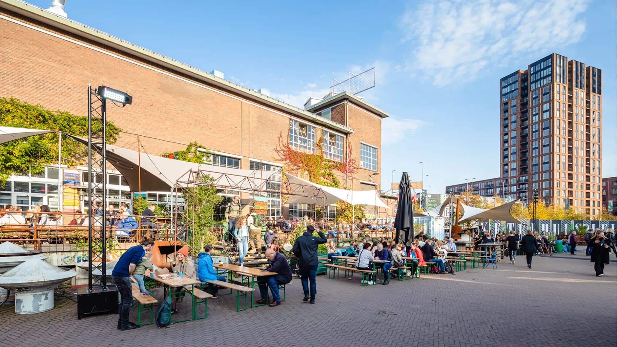 KETELHUISPLEINHet centrale plein met horeca en ontmoetingsplekken, en elk jaar het kloppend hart van de Dutch Design Week.